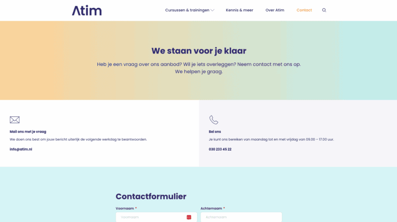 Met een speciaal ingerichte blogpagina, Kennis & Meer, biedt Atim waardevolle artikelen en inzichten. Dit versterkt de positie van Atim als expert in hun vakgebied en biedt extra waarde aan bezoekers, zelfs voordat ze een cursus boeken.