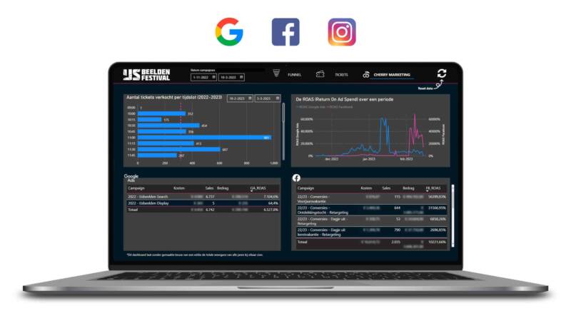 Hier lag onze grootste uitdaging! Met een groot budget waren wij verantwoordelijk voor de verkoop van 55.000 kaarten in 3 maanden tijd. We hebben ingezet op Google SEO en SEA, Facebook, Instagram en periodieke nieuwsbrieven. Met behulp van een online dashboard dat speciaal voor IJsbeelden is ontwikkeld, konden we in één oogopslag alle communicatiekanalen monitoren en aansturen op basis van de resultaten. De doelstelling is (uiteraard) ruim behaald door Cherry!