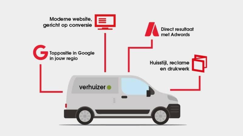 "Wij zijn dé succesvolle one-stop-shopformule voor MKB verhuis- en transportbedrijven, van website tot en met reclamefolders, van online marketing tot en met signing van het wagenpark."