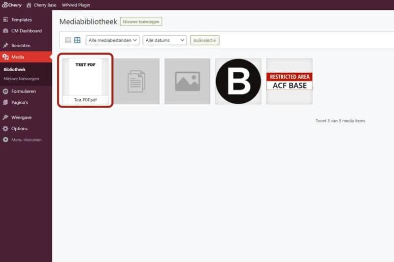 Upload de PDF in de media bibliotheek
